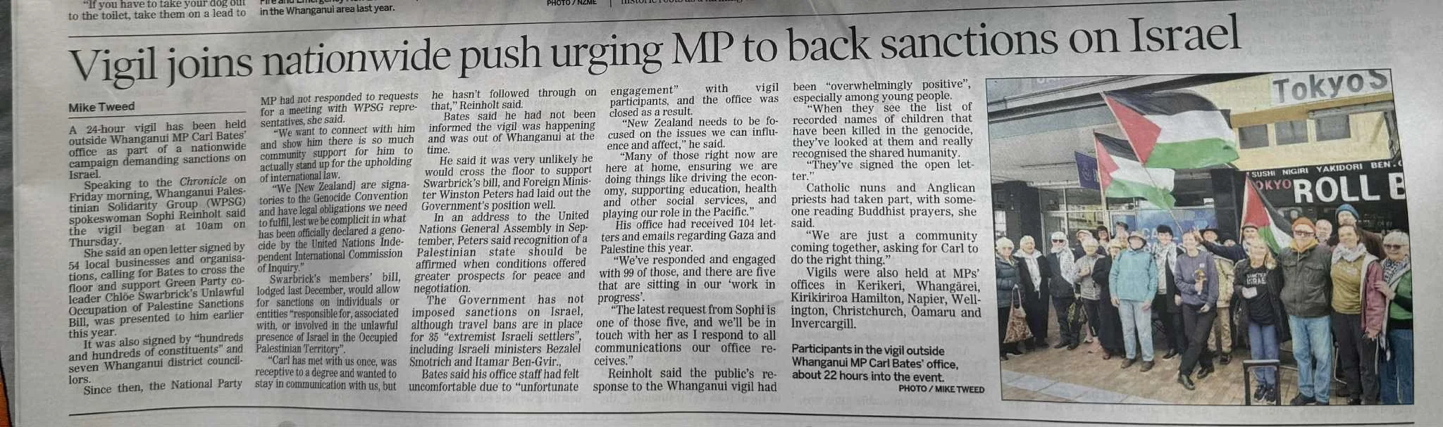 As of July 2025, we have received over 50 local businesses’ and hundreds upon hundreds of individual signatures in support of our open letter calling on our MP to support Chlöe Swarbrick’s “Unlawful Occupation of Palestine Sanctions Bill”.