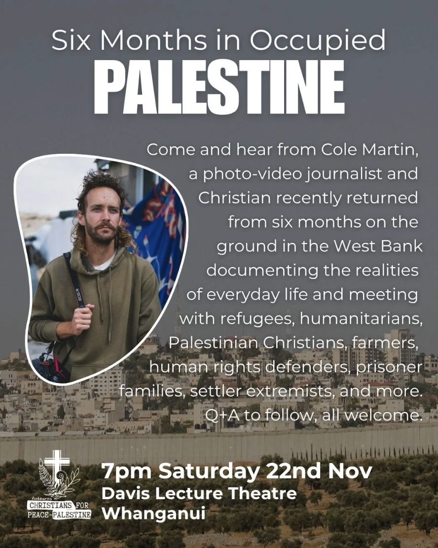 We had a good turnout for Aotearoa Christians for Peace in Palestine / Justice for Palestine / and WPSG’s public presentation by photo/video journalist Cole Martin.